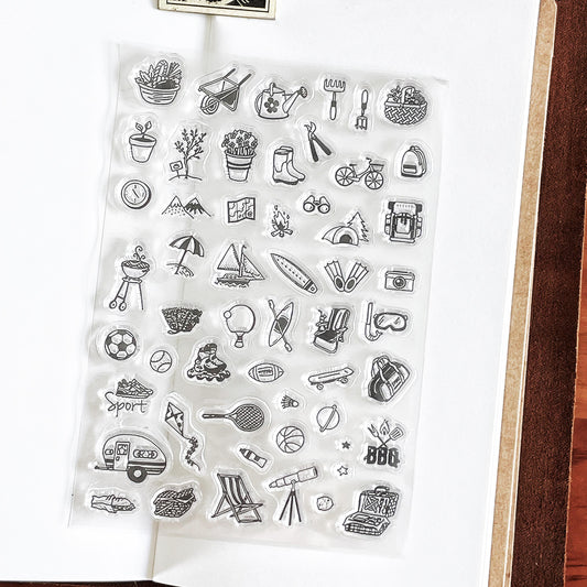 Outdoor Activities Clear Stamp | Cute Mini Icon Gardening Sport Camping Transparent Rubber Stamps | Bullet Journal Planner Accessories