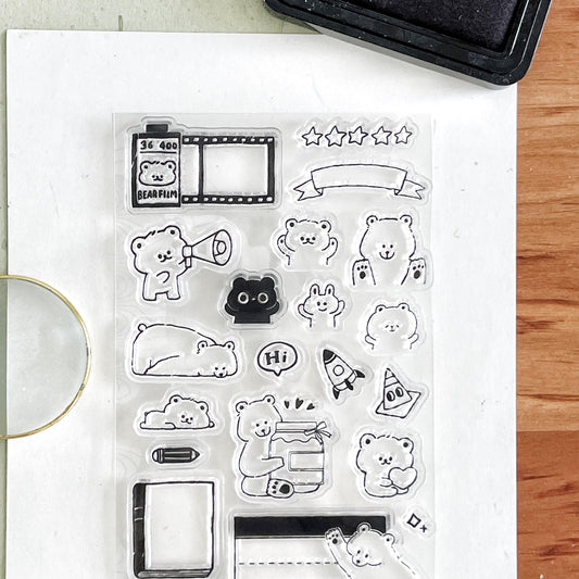 Cute Bear Clear Stamp | Daily Plan Transparent Rubber Stamp Set | Planner Bullet Journal Journaling Supply TN Accessories
