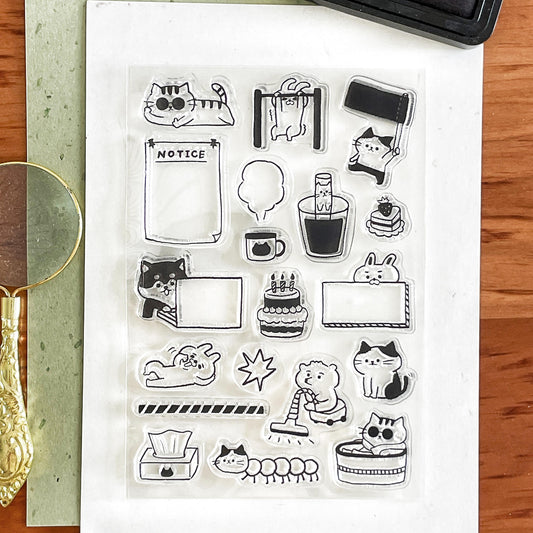 Cute Cat Clear Stamp | Daily Plan Transparent Rubber Stamp Set | Planner Bullet Journal Journaling Supply TN Accessories
