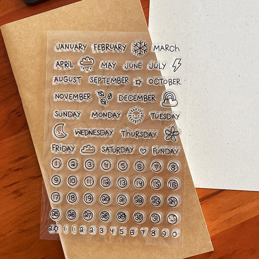 Calendar Weather Clear Stamp | Week Month Day Transparent Rubber Stamps | Bullet Journal Planner Accessories Journaling Supplies