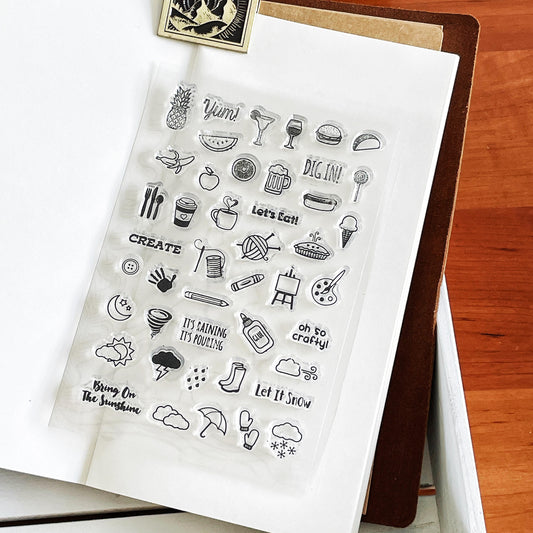 Weather Food Craft Icon Clear Stamp | Cute Mini Icon Transparent Rubber Stamps | Bullet Journal Planner Accessories Supplies
