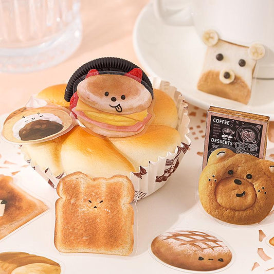 Cute Bread PET Sticker Pack | Bread Toast Bagel Stickers | Planner Sticker Set | Junk Journal | Die Cut Deco Stickers