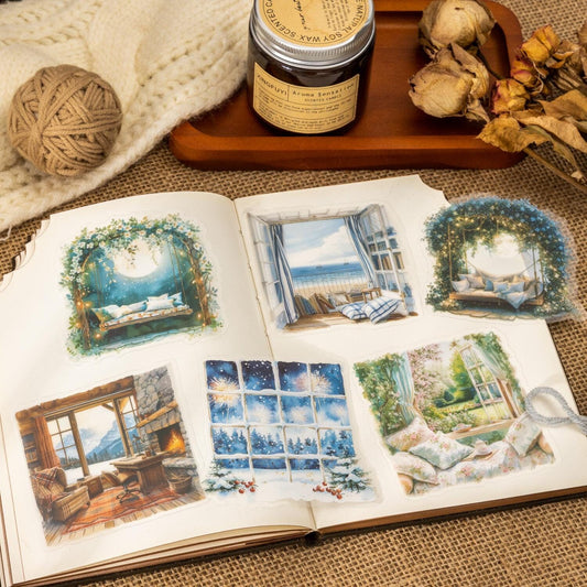 Bright View Outside the Window PET Sticker Pack | Decorative Planner Stickers | Scrapbooking Collage Junk Journal Album Sticker Supplies