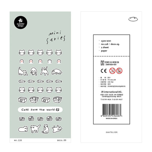 Suatelier Korean Mini Series Stickers | Cute Cat Weather Workout Planner Decorative Stickers | Bujo Journal Collage Scrapbooking Supplies