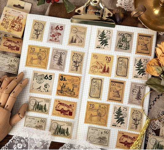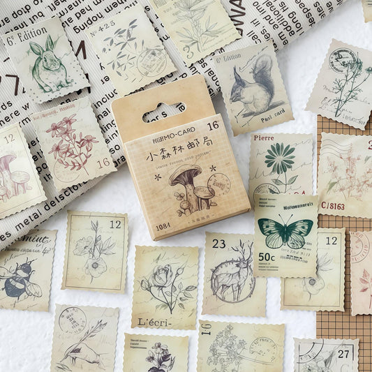 46pcs Vintage Forest Stamp Sticker Pack / Junk Journal / Stickers / Planner Sticker Set
