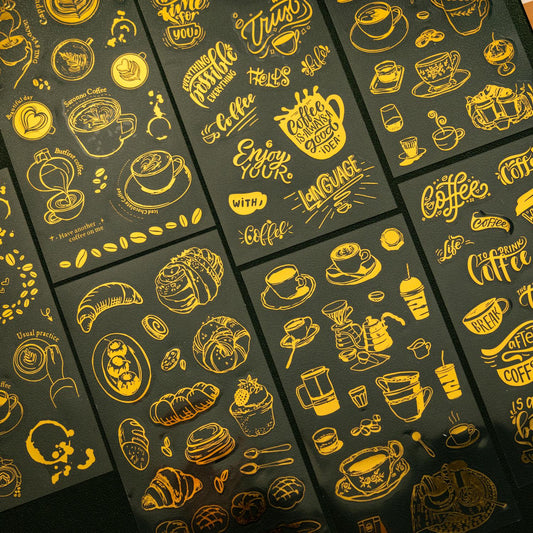 Retro Gold Foiled Coffee Stickers | Coffe Bread Stickers | Journal Sticker Set | Coffee Plant Junk Journal Stickers | Scrapbooking Supplies