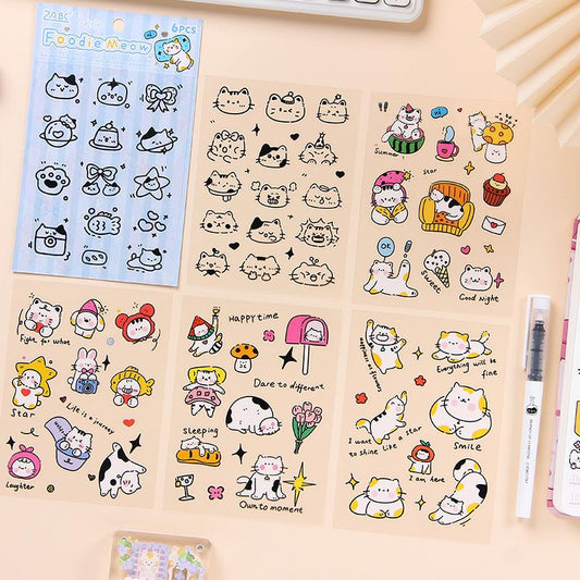 6 Sheets Cute Cat Stickers | Kitten Stickers | Kawaii Animal Planner Stickers Junk Journal Scrapbooking Supplies