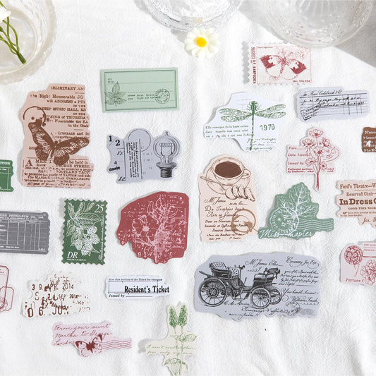 30pcs Retro Sticker Pack | Coffe Plant Butterfly Girl Stickers | Journal Scrapbooking Collage Crafting Supplies | Planner Sticker