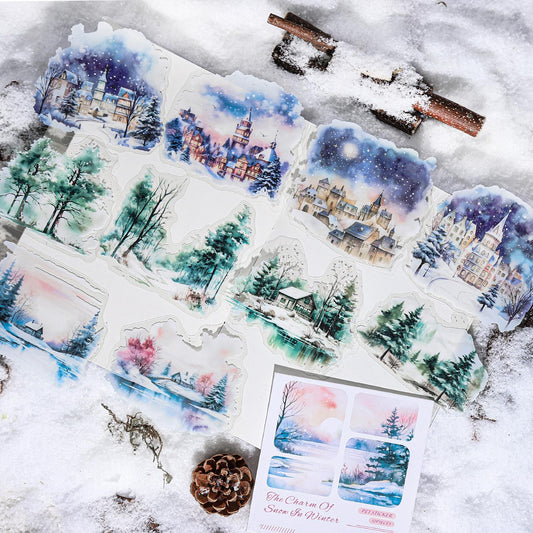 Snow Winter Landscape Sticker | Cute Decorative Stickers for Planner Junk Journal Collage Album Scrapbooking Supplies