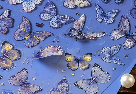 Retro Silver Foiled Butterfly Flower Sticker Sheet | Decorative Stickers | DIY Collage Planner Journal Scrapbooking Kids Craft Supplies