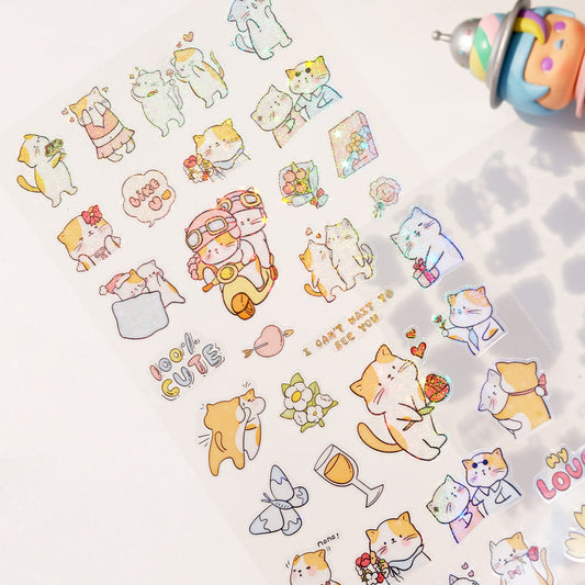 Nekoni PVC Cute Dog Cat Stickers | Valentine's Day Study Stickers | Kawaii Animal Planner Journal Collage Stickers Scrapbooking Supplies