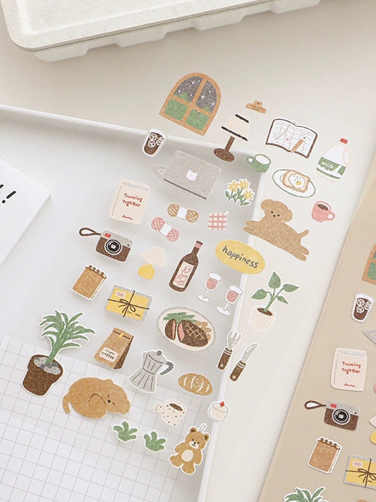 Suatelier Korean Slow Life Aesthetics Stickers | Kawaii Planner Decorative Stickers | Bujo Junk Journal Collage Scrapbooking Supplies