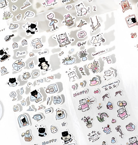 Kawaii Cat Daily Life Washi Tape | Cat Coffee Flower Decor Material Decorative Tape | Creative DIY Journal Planner School Stationery