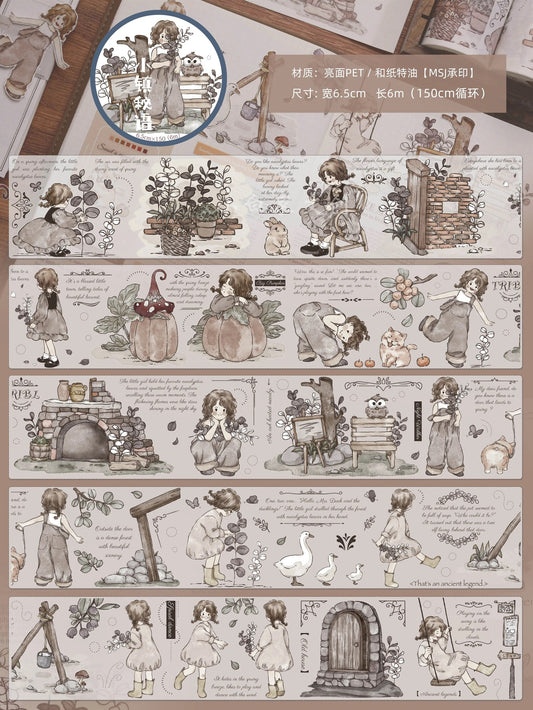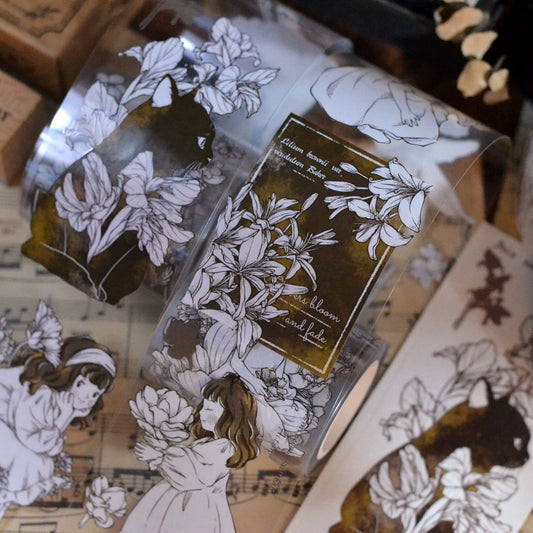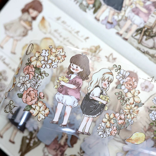 Retro Cute Girl Floral Washi Tape | PET Tape | Junk Journal Kit | Deco Stickers for Planner | Kids Craft | Planner Scrapbooking Supplies