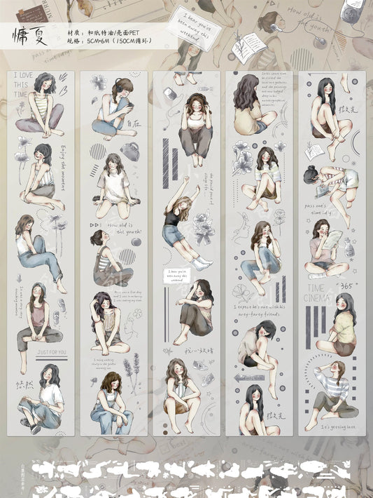 Girl Washi Tape | PET Tape | Junk Journal Kit | Deco Stickers for Planner | Planner Journal Scrapbooking Supplies