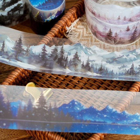 Forest Mountain Landscape Tape | Nature Healing PET tape Roll | Travel Tape | Decorative Tapes | Junk Journal Collage Supplies