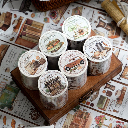Retro Coffee Time Washi Paper Tape | Life Aesthetics Planner Tape | Masking Tape | Gift Wrapping | Collage Kit Junk Journal | Gift for Girls
