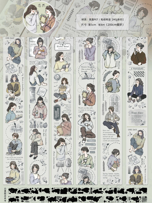 Girl Daily Life Washi Tape | PET Tape | Junk Journal Kit | Deco Stickers for Planner | Planner Journal Scrapbooking Supplies