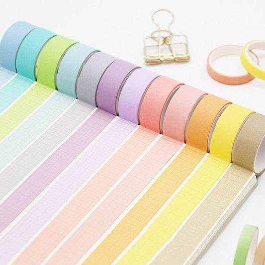 Pastel Colors Washi Tape Set | Solid Colors Masking Tape | Rainbow Decorative Tapes | Gift Wrapping Planner Bullet Journal Craft Supplies