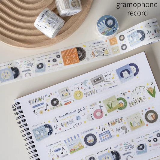 Cute Handdrawn Gramophone Record Retro Life Tape | Planner Tape | Decorative Washi Tape | Journal Scrapbooking Collage Supplies
