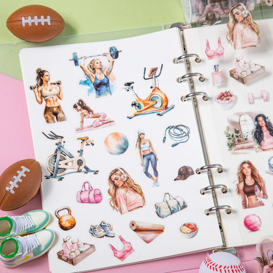 Workout Sport Exercise Girl Die Cut PET Tape | Character Life Aesthetics Planner Decorative Tape Sticker | Collage Junk Journal Supplies