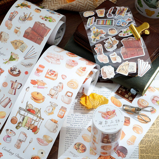 Hand-drawing Washi Tape | Bread Cake Market Food | Planner Journal Deco Stickers | Craft Scrapbooking Supplies | Gift for Her
