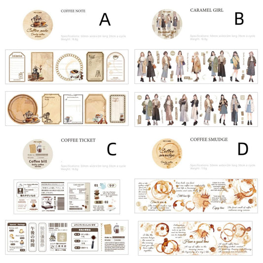 Daily Coffee Tape | Coffee Shop Girl Smudge Label PET tape | Junk Journal Planner Bullet Journal Tape | Gift Wrapping | Gift for Girls