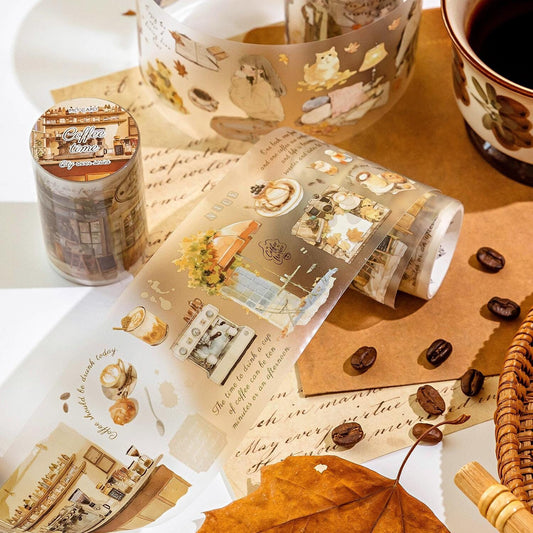 Cozy Coffee Corner PET Tape | Coffee Decorative PET tape | Journal Scrapbooking Collage Crafting Supplies | Coffee Lover Gift