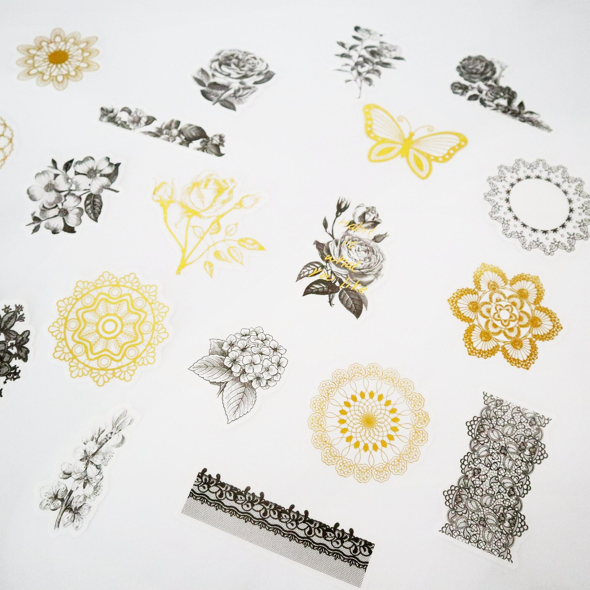 60pcs Gold Foil Flower and Leaves Sticker Pack / Floral Botanical / Stickers / Planner Sticker Set