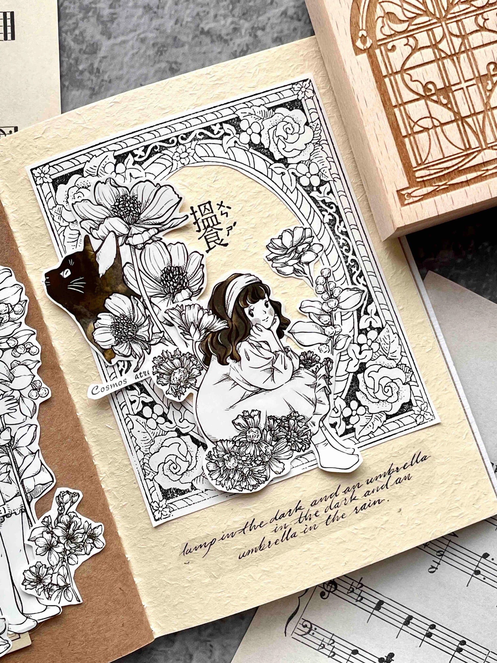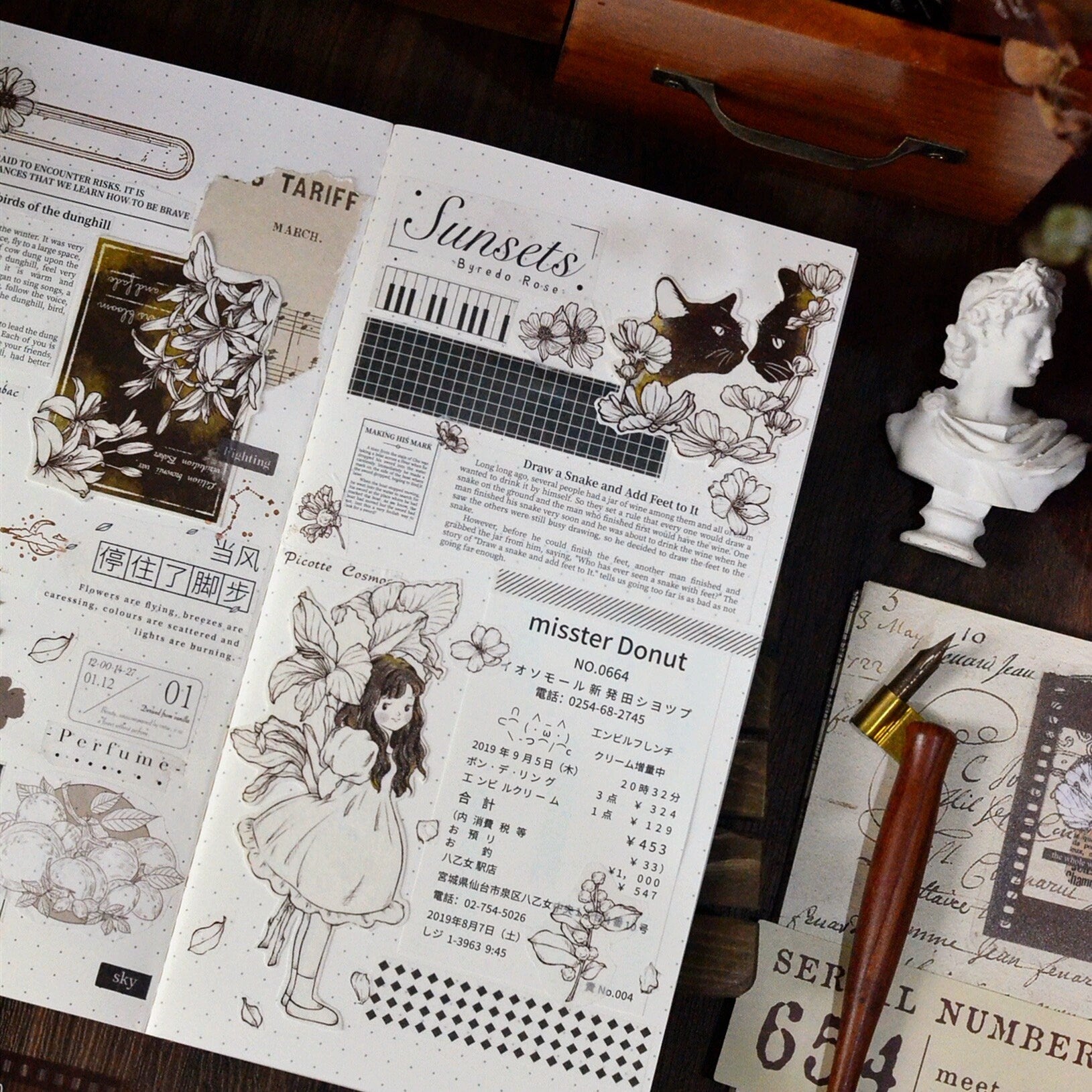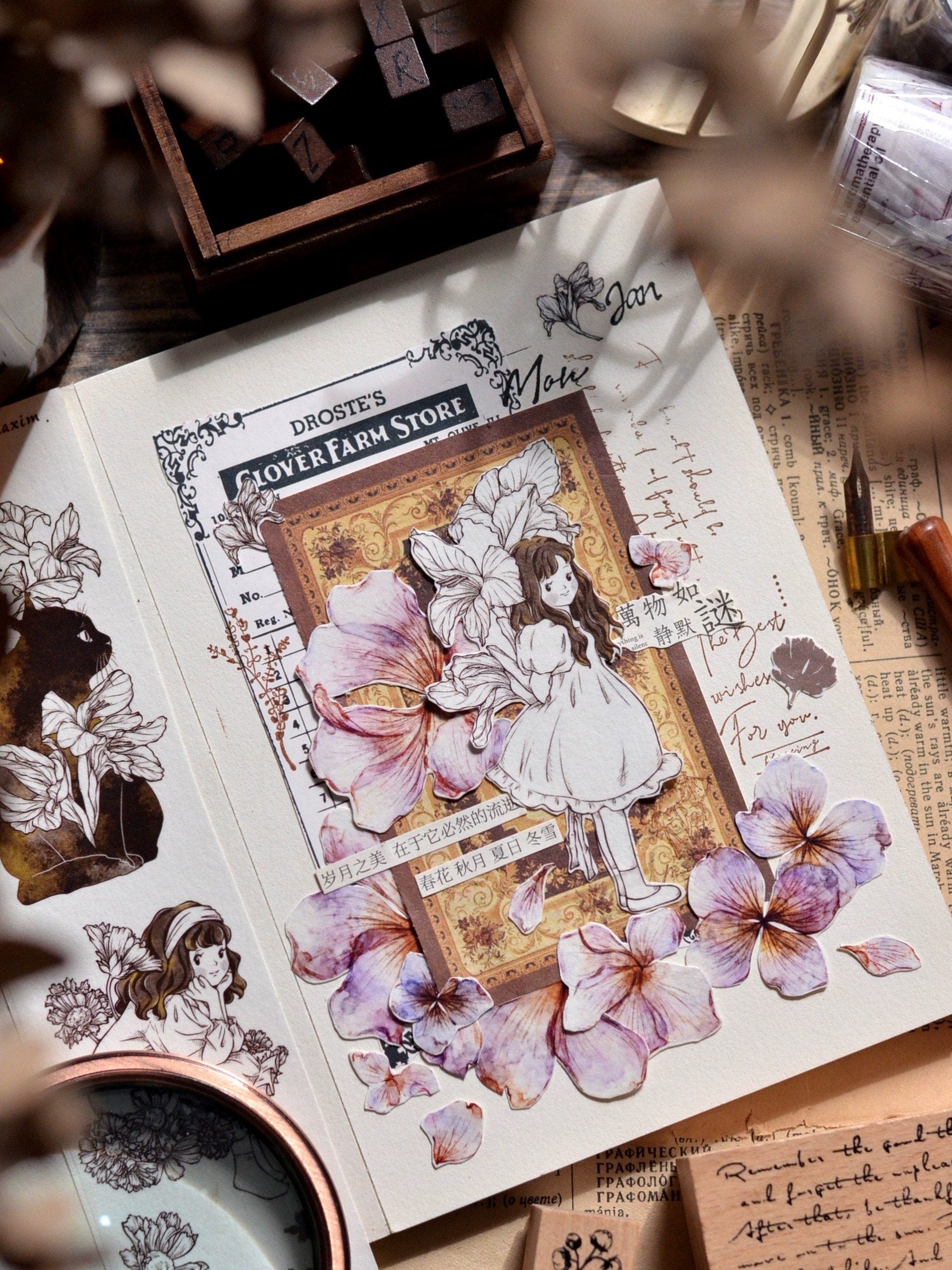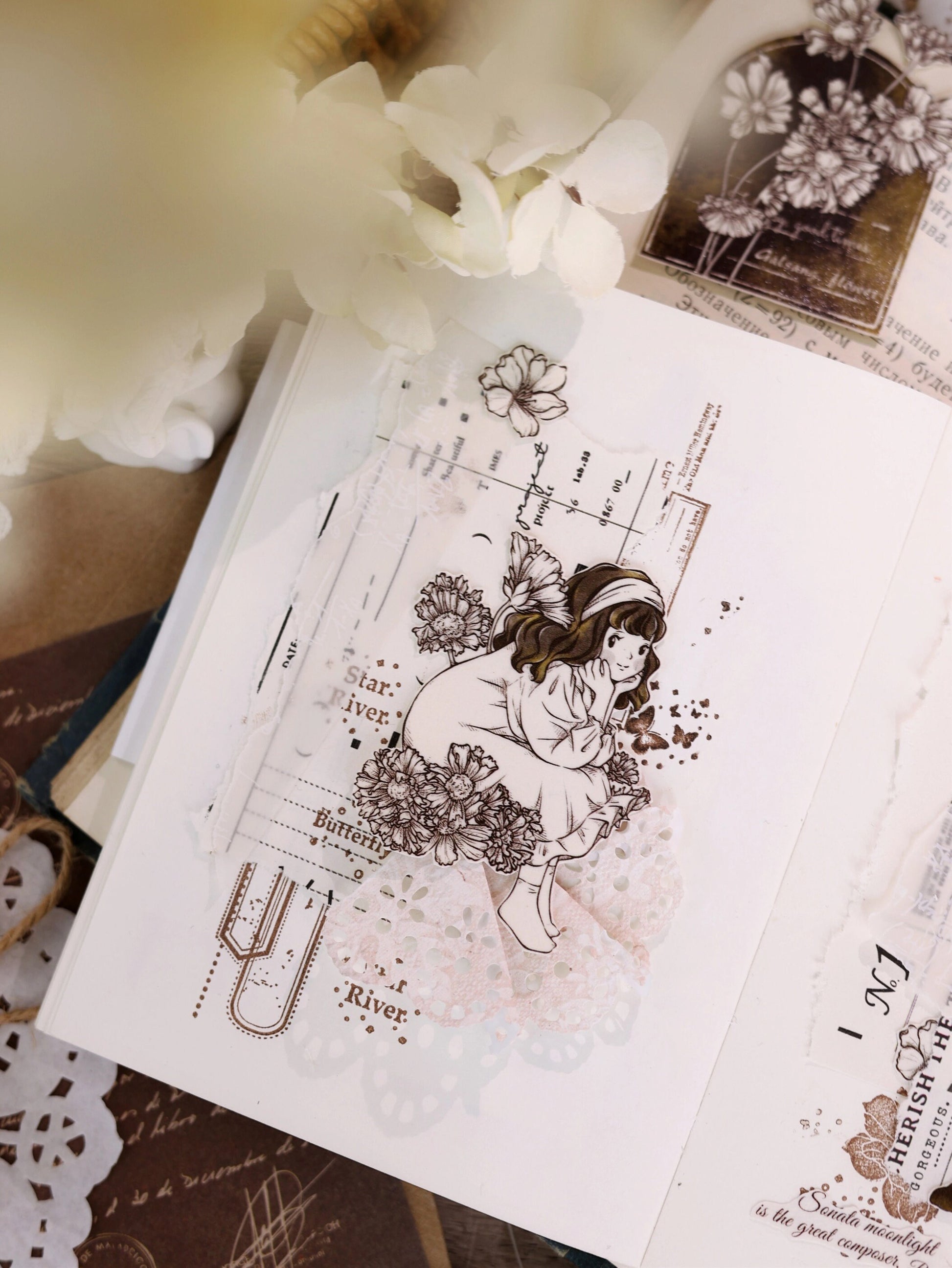 Retro Cute Girl Floral Washi Tape | PET Tape | Junk Journal Kit | Deco Stickers for Planner | Planner Journal Scrapbooking Supplies