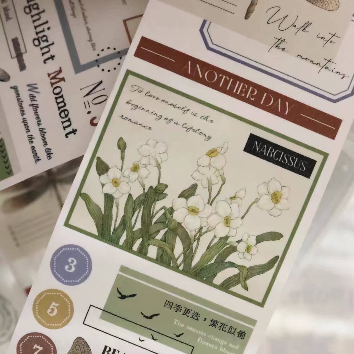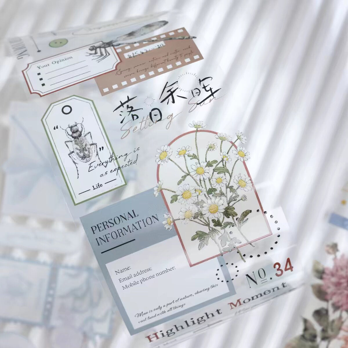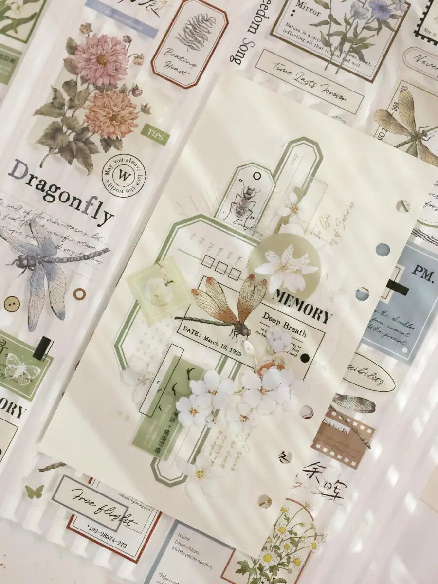 Retro Dragonfly Flower Collage PET Tape | Washi Tape | Decorative Tapes Stickers | Planner Junk Journal Craft Collage Scrapbooking Supplies