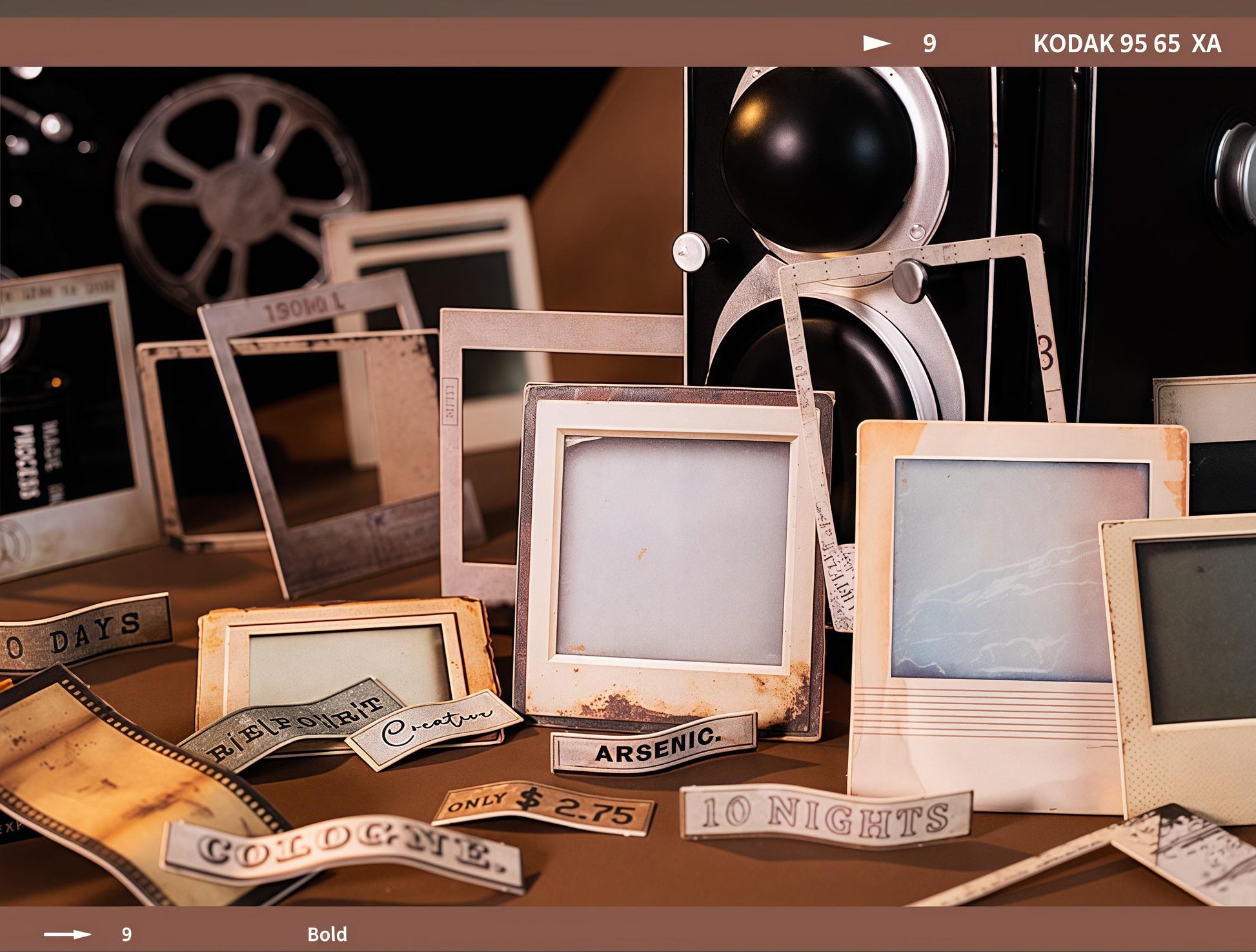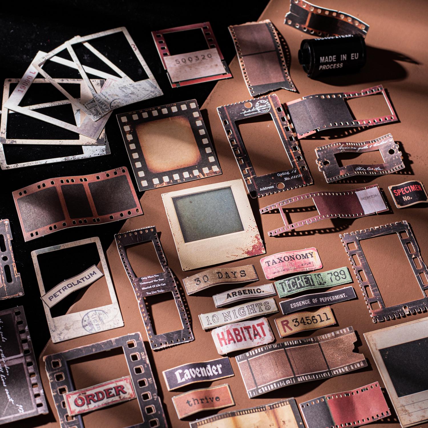 Retro Film Theme Hard Card Stickers | Junk Journal Collage Starter | Bullet Journaling Scrapbooking DIY Album Supplies