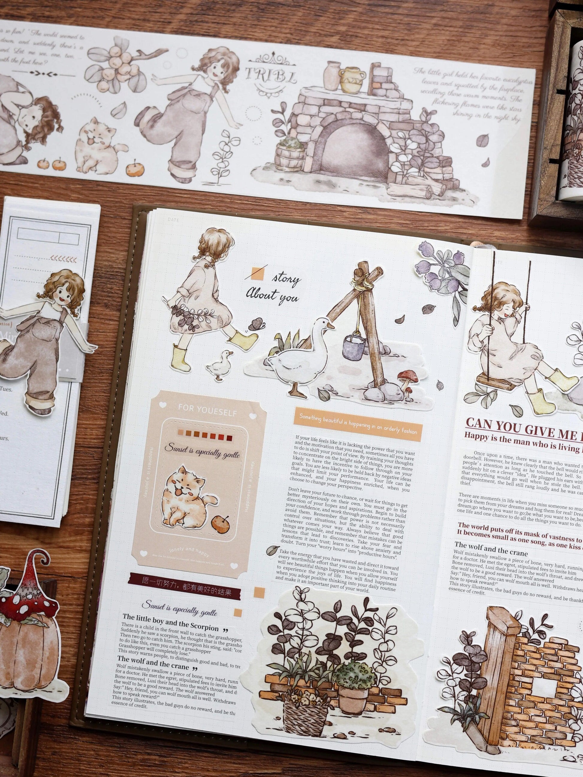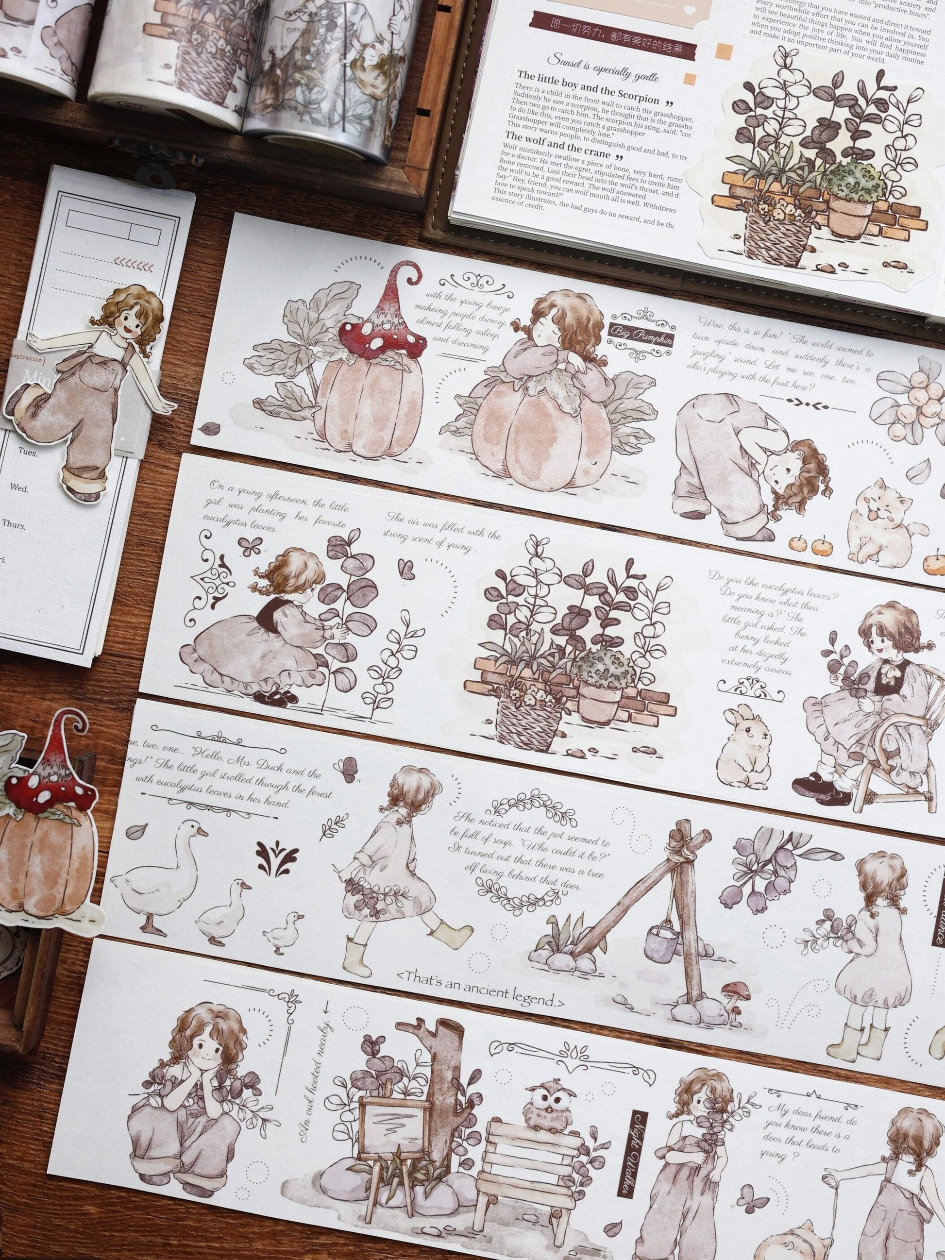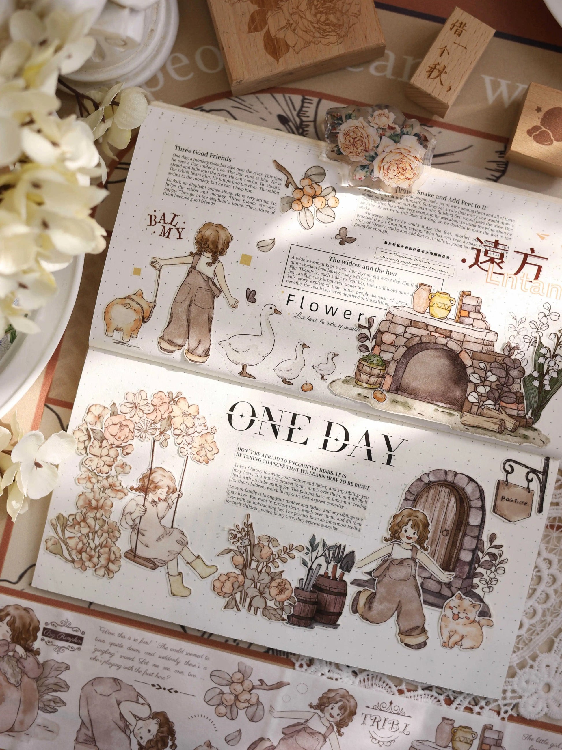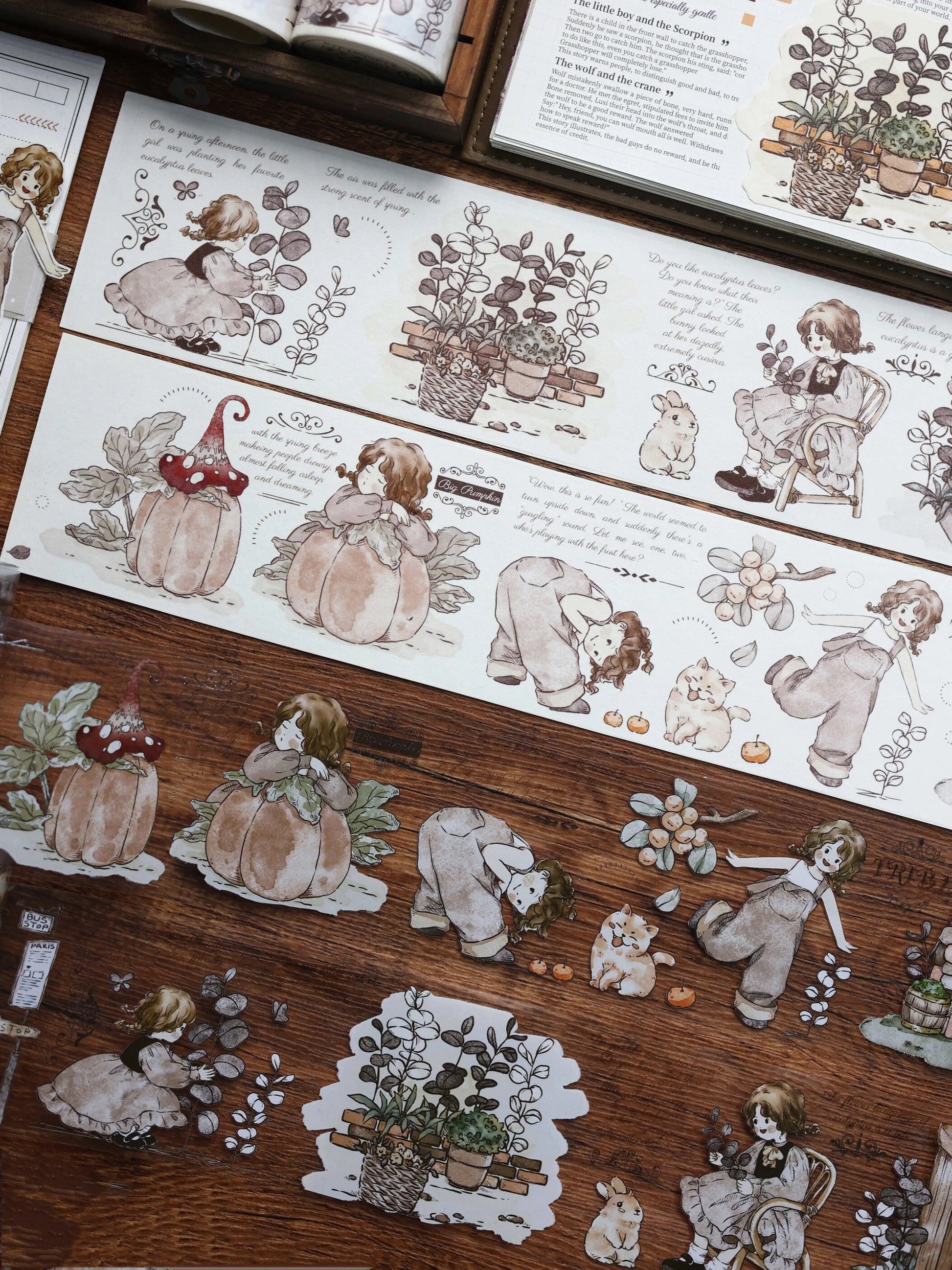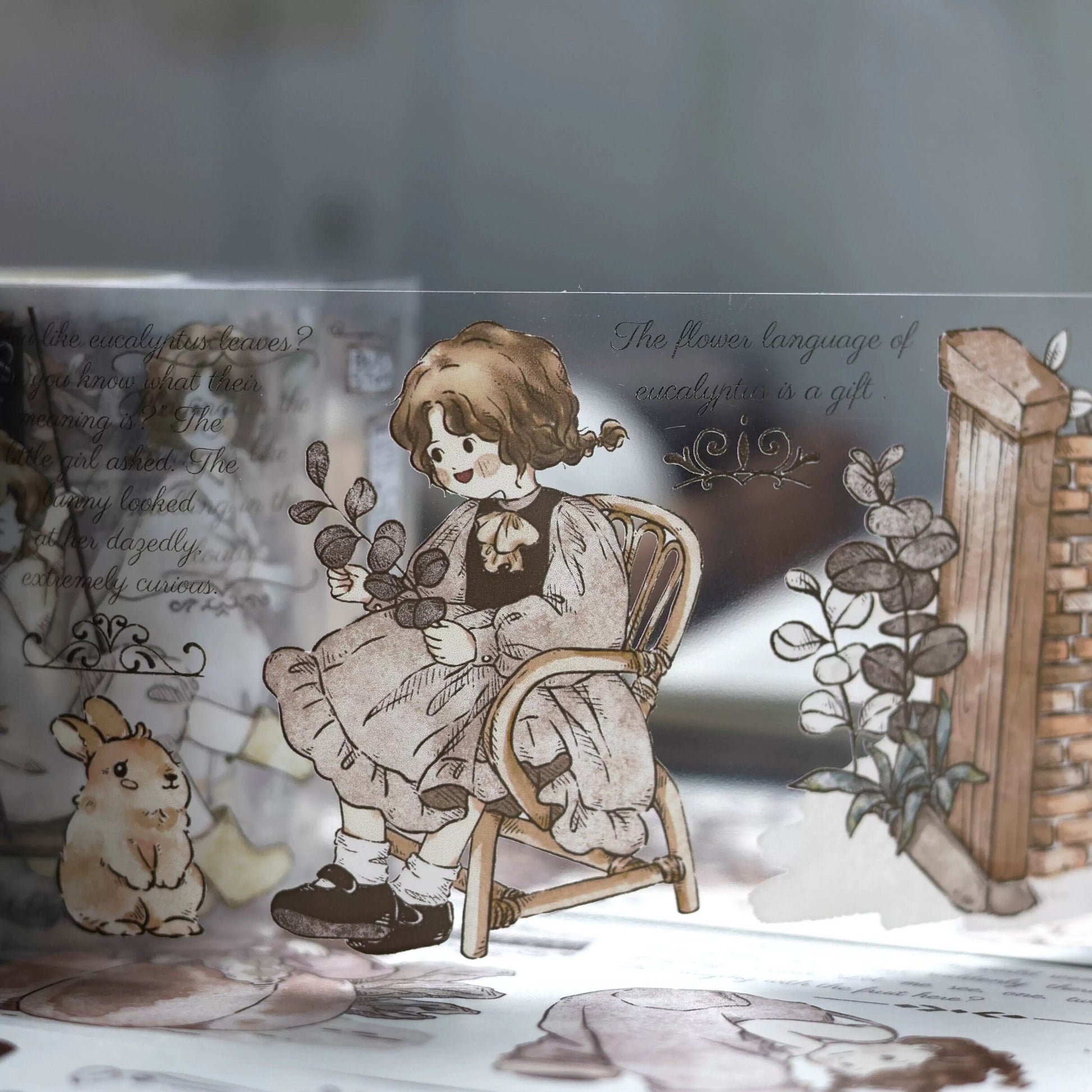 Retro Girl Floral Washi Tape | PET Tape | Junk Journal Kit | Deco Stickers for Planner | Kids Craft | Planner Scrapbooking Supplies